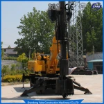 It is widely praised by customers for its compact size, powerful functions and high cost performance. The drilling rig is equipped with a four-drive power transmission system and a hydraulic expansion center of gravity. The upper body can be rotated 360 degrees stably, which increases the working range and area. The maximum drill rod depth of the drilling rig can reach 20 meters, and the drilling radius is 500-1500MM.